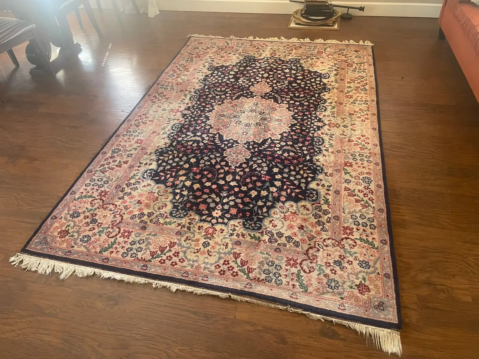 Pre-inspection and dye testing comes first. I assess rug construction, fiber condition, and dye stability before any cleaning begins. Color testing in an inconspicuous area takes only a few minutes and gives important information about how the rug will respond to moisture and chemistry.