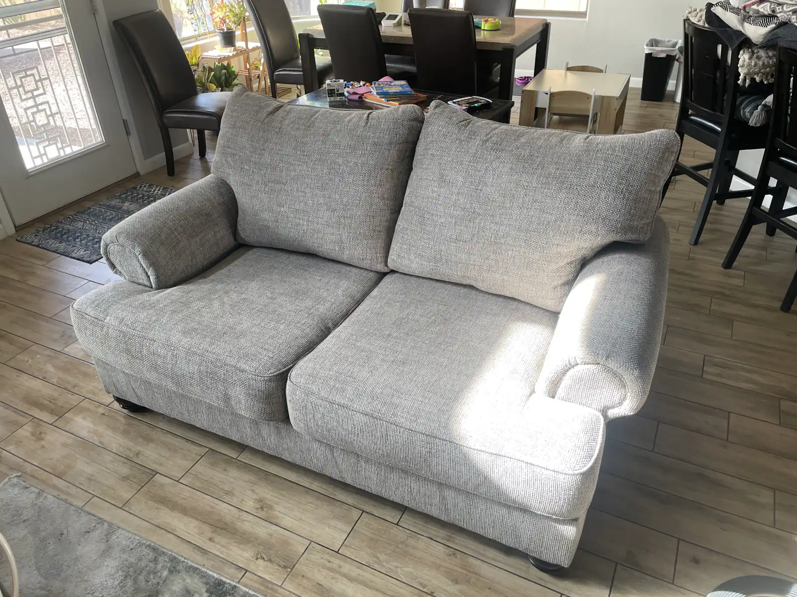 Cleaning a standard two-cushion loveseat typically takes 45-60 minutes including assessment, pre-treatment dwell time, agitation, and extraction. With low-moisture VLM cleaning, the fabric is dry and usable in 30-45 minutes after cleaning. You don't need to stay off it for hours. In Surprise's dry climate, evaporation is fast.